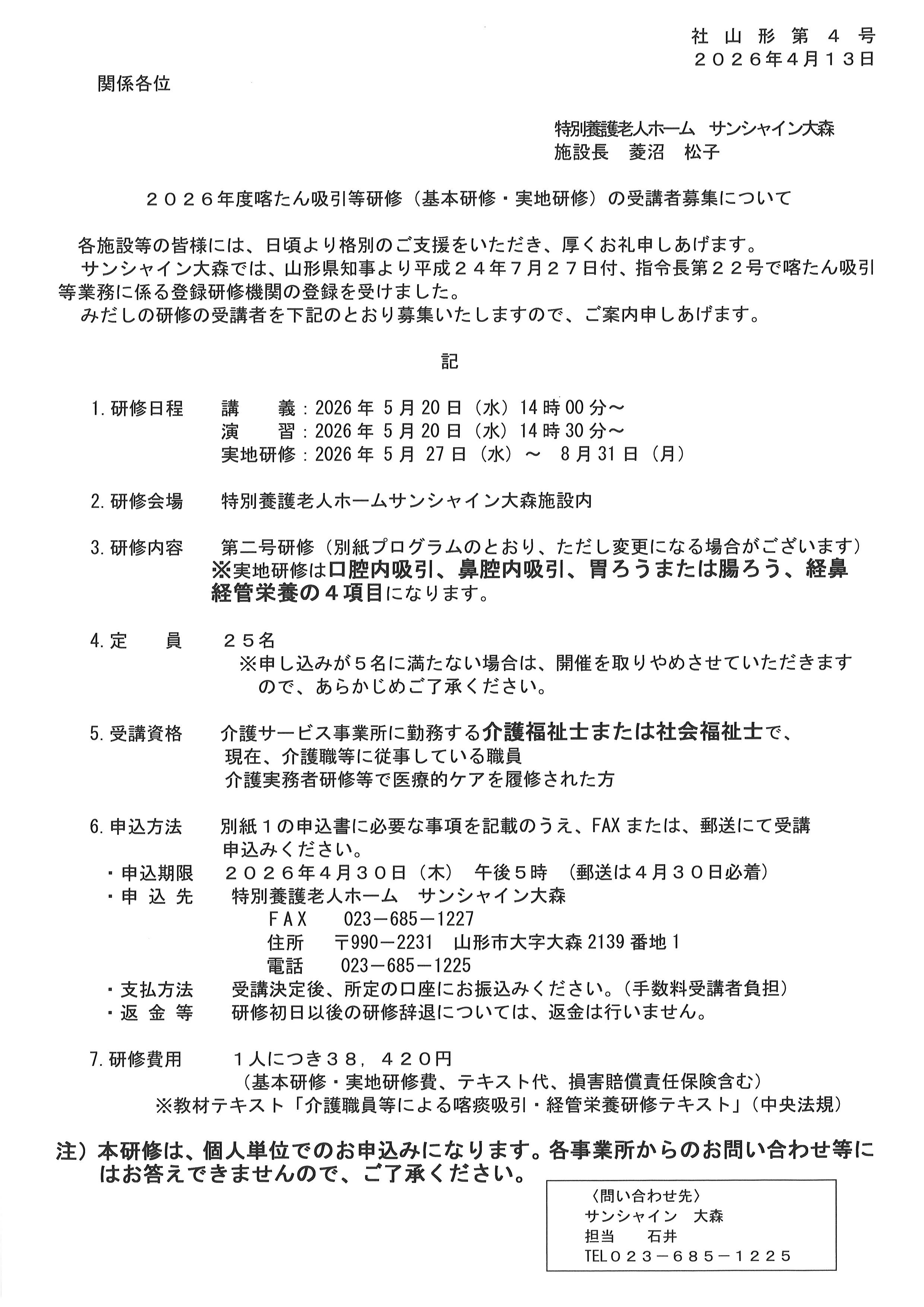 喀痰吸引研修2026